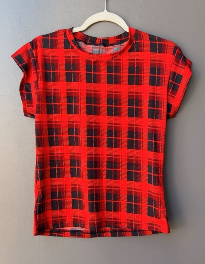 BLUSA SUEDE COM GOLA BAIXA XADREZ REF 357 - REF: 357