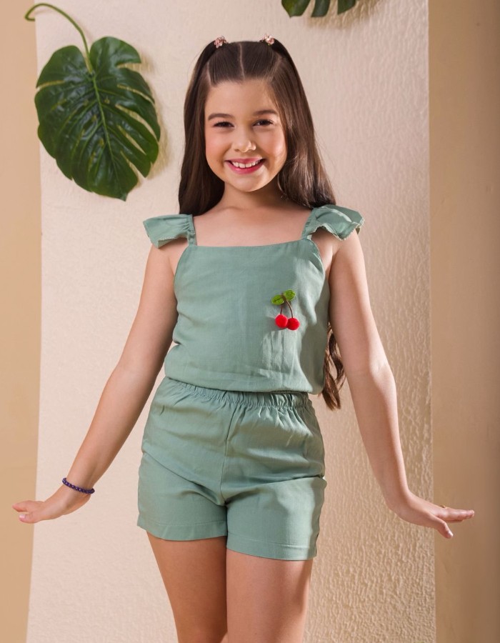 CONJUNTO INFANTIL SHORT E CROPPED POMPOM REF 084 - REF: 084